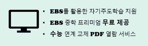 기존에 유료였던 EBS 중학프리미엄( 71만 원/년)을 무료로 제공하여, 중학생 자녀가 질 좋은 EBS 강좌를 수강 가능합니다.