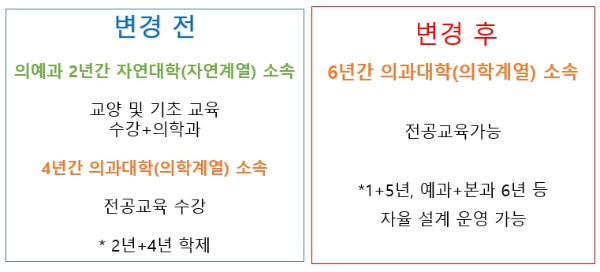 예과 1년과 본과 5년으로 또는 통합하여 6년으로 하는 것을 의대가 자유롭게 설계가 가능합니다.